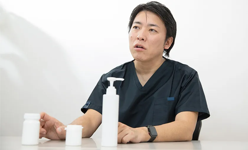 【Sui+】は、医療で行うべきことをきちんと理解し、それを踏まえ、医療の手前で実施すべき日々のケアを医師が提唱し、日本の男性のウェルネス環境を整えることを目標とするブランドです。内科医と皮膚科医が日々議論を重ねることで、カラダの内側からのケア(サプリメントなど)と、外側からのケア(シャンプーやローションなど)の両方について、製品開発をこだわり抜くことができます。