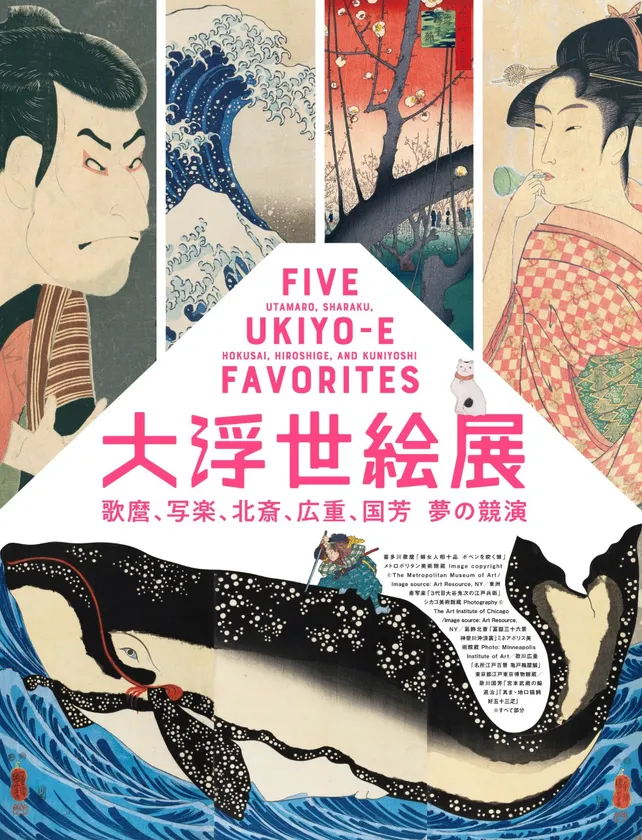 本展は2014年に開催し、全国3会場で約38万人を集め、浮世絵ブームを作り出した「大浮世絵展」に続く展覧会です。今回は浮世絵/Ukiyo-eの歴史の中でも、キラ星のごとく輝いた人気絵師である喜多川歌麿、東洲斎写楽、葛飾北斎、歌川広重、歌川国芳の5人にフォーカスし、国内のほか欧米の美術館、博物館、個人コレクション等から傑作だけを集めました。