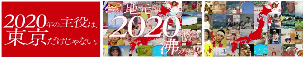 日本を代表する世界的アスリート3名が登場する32本のCMは、地元民なら誰でも知っている地元企業の個性豊かな地域限定CMとそっくりな構成で、大きな盛り上がりを予感させる2020年のスポーツ界を、それぞれの地元から盛り上げるべく応援を呼びかける内容です。