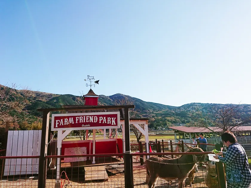 動物たちとすぐ近くでふれあえる「動物ふれあい広場」が「FARM FRIEND PARK」としてリニューアルしました。リニューアル工事は地元・丹那に住むアメリカ人ハーフの「Bohemian Crafts(ボヘミアンクラフト)」のバーブさんが全て1人で行いました。雨が苦手なオラッチェの動物たちのために小屋を大型にし、夏の強い日差しからも動物たちを守ってあげられるように日陰を多く作ったりと動物たちに優しいこだわりがいっぱいです。ポイントは屋根につけた「カザミウシ」。丹那の青空と緑の山々にリニューアルした赤い小屋が映え、美しい景色がお楽しみいただけます。