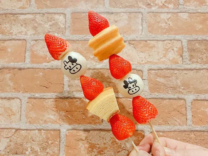 丹那牛乳の特製ミルク餡のぎっしりつまった「みるくまん」とオラッチェのお土産人気No.1の「丹那牛乳バーム」と「伊豆産の紅ほっぺ」が楽しめる、この季節だけの「いちご串」の販売もスタートしました。