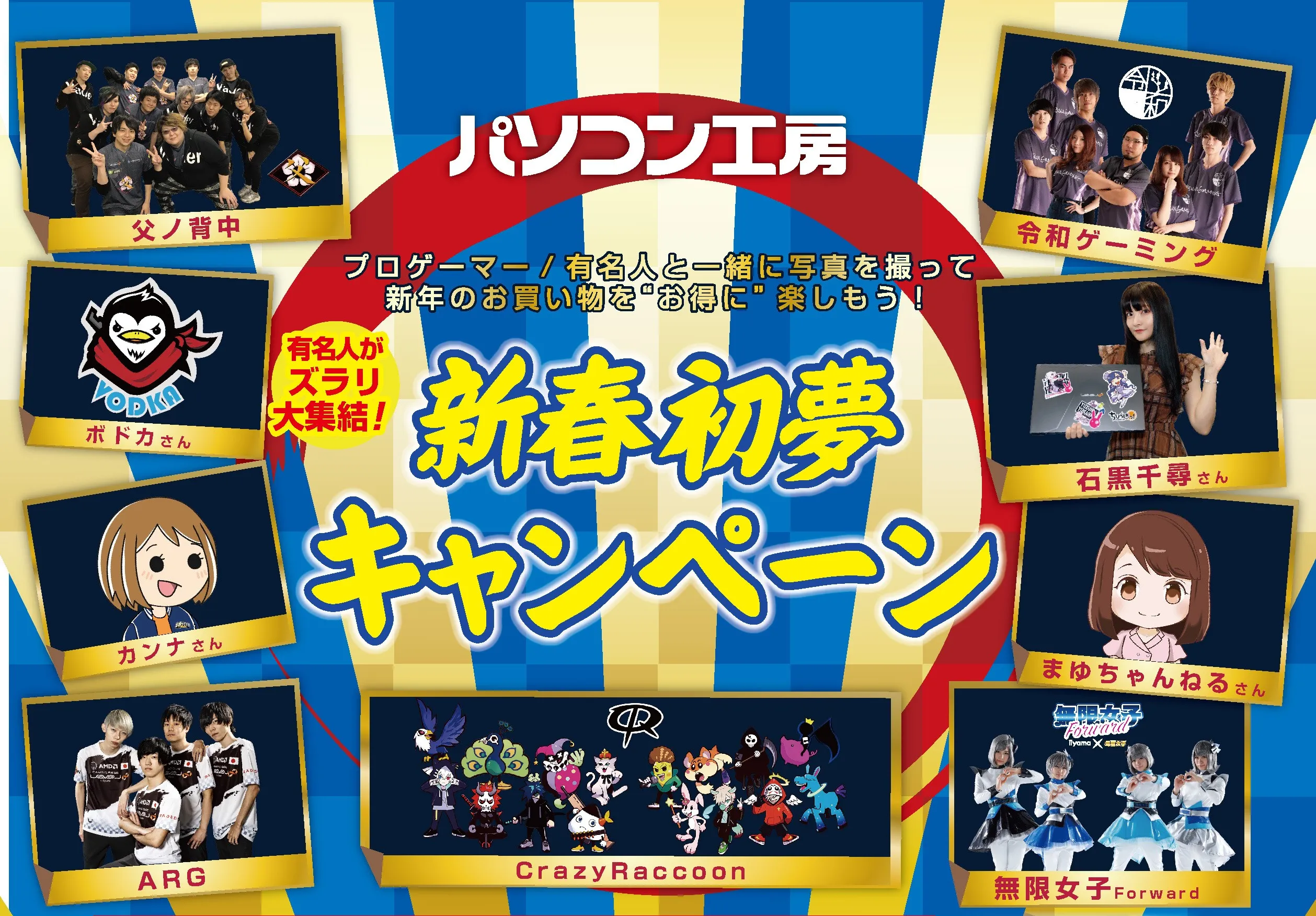 パソコン工房『2020年 新春初売りセール』を開催! 数量限定『初売り限定 初夢福袋』、『お年玉特価パソコン』他 プロゲーマー&有名人と写真を撮ってお買い物をお得に楽しめる 『新春初夢キャンペーン』も実施!