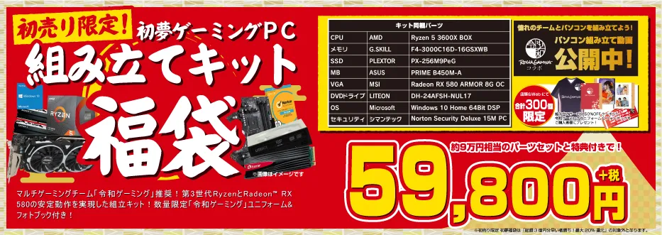 「令和ゲーミング」推奨!第3世代Ryzen 5 とRadeon RX580の安定動作を実現した組み立てキット!数量限定「令和ゲーミングユニフォーム」&「令和ゲーミングオリジナルフォトブック」付き!