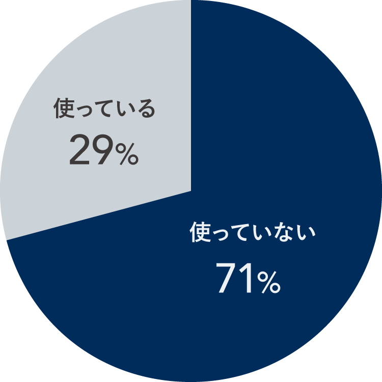 「業務効率を改善するため、施策効率を向上させるためのツール導入」について調査したところ、71%が「ツールを使用していない」と回答しました。重要業務へ多くの時間を割くことができないと回答する人が多数を占める中、多くのマーケターが広告配信業務や顧客データ入力などをマンパワーで解消していることが明らかになりました。