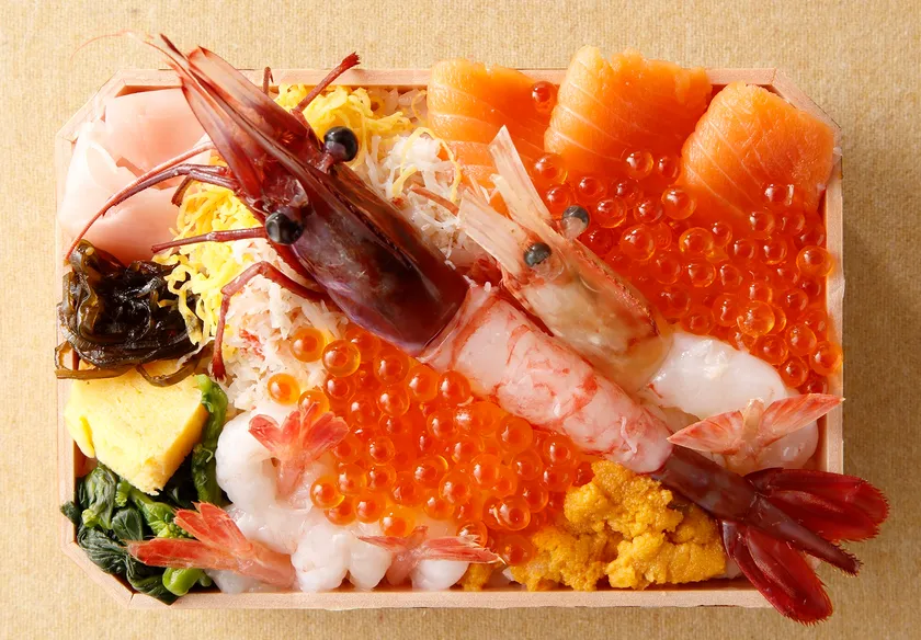 水深400m以上の深い海に生息する上質で濃厚な甘みのある特大サイズのプリプリ食感の海老を使用した海鮮弁当。