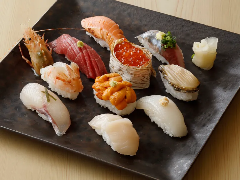 松前・奥尻産の甘みが強く極上の味わいを楽しめる希少なイバラモエビなど計10貫を楽しめる握りずし。