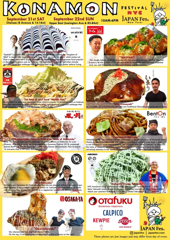 ラーメンコンテスト同様に人気があるお好み焼き・たこ焼き・もんじゃ焼きなどの粉ものコンテスト。こちらも毎回日本から参加いただく粉もの店舗さん目当てに沢山のニューヨーカーが参加し、優勝店舗さんなどを筆頭に1時間待ち以上の列が出来る人気イベントとなっています。