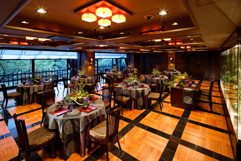 窓一面に広がる日本庭園を眺めながらお楽しみいただくお食事をスタッフ一同、細やかな心配りでおもてなしする事をお約束致します。