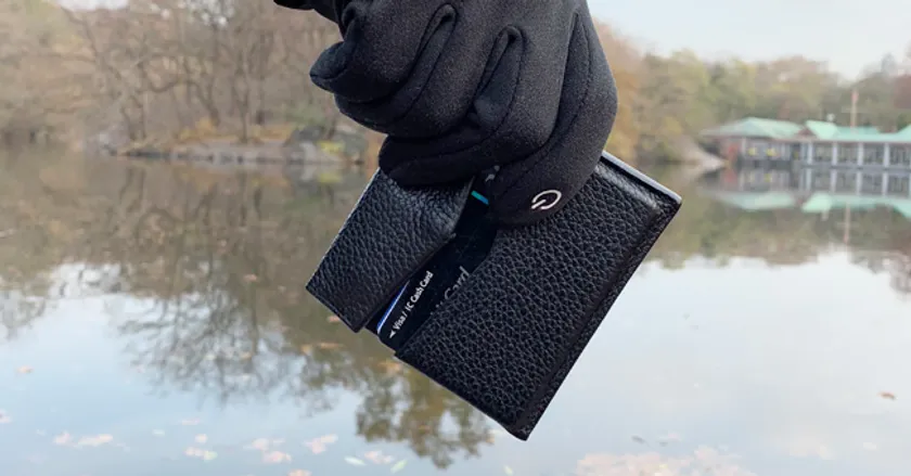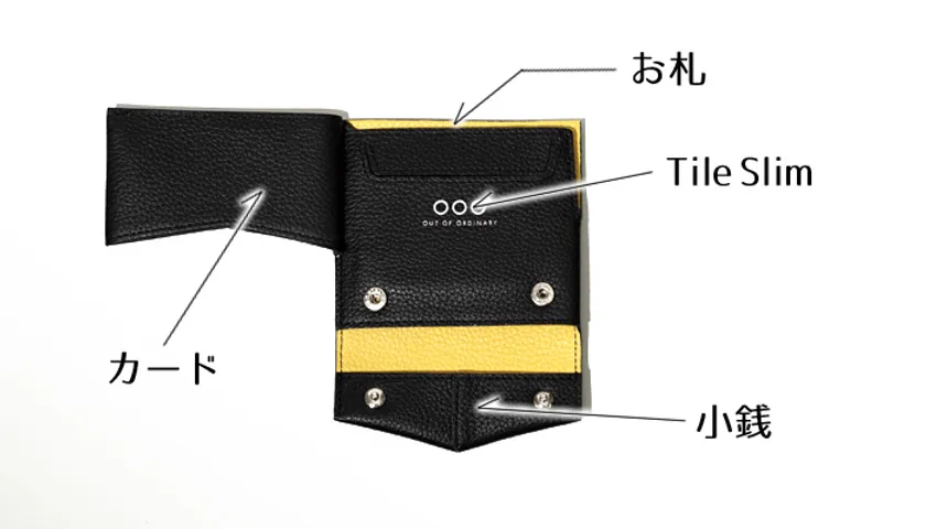 Tileを収納した状態で財布ブランドロゴ辺りをダブルクリックすると、内臓されたTileのボタンが押され、Tileを都度出し入れすることなく簡単に使用できる様に設計されています。