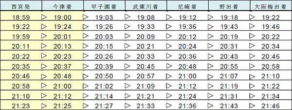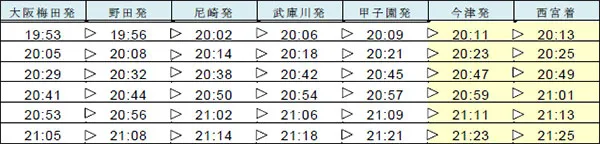 2:西宮発大阪梅田行き急行 10列車(西宮~甲子園間を延長運転)