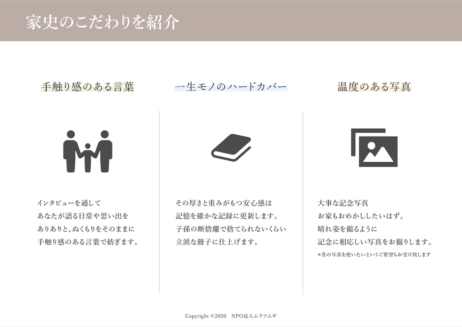 「これから家をどうしよう」とお悩みの方のための、お家の記憶を記録に残すオーダーメイド書史です。