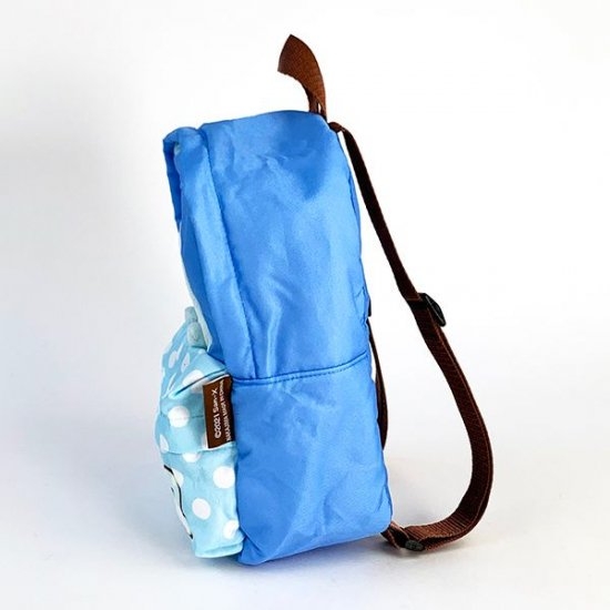 子供に持たせたいキュートなキッズサイズのリュックです。ちょこんと小さなおててが乗っています♪なんだかお布団から顔を出しているようにも見えますね☆サイズは26×19×13cmです。