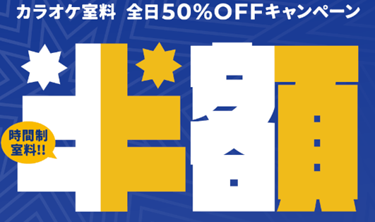 ・カラオケ室料、全日50%OFFキャンペーン