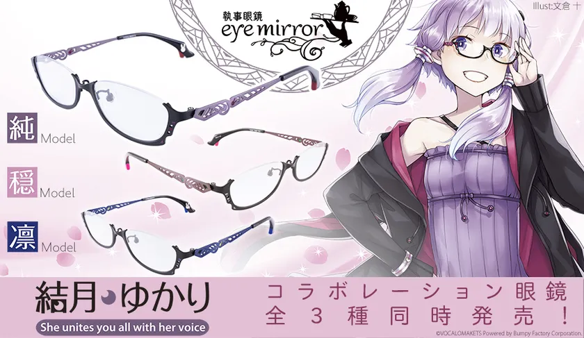 執事眼鏡eyemirrorの通信販売部門を運営する株式会社DUO RINGは、2020年2月11日(火・祝)に大田区産業プラザPiOにて開催されるイベント「この声届け、月までも六」に、コラボレーション眼鏡「結月ゆかり-純- モデル」「結月ゆかり-穏- モデル」「結月ゆかり-凛- モデル」3種の先行販売をいたします。