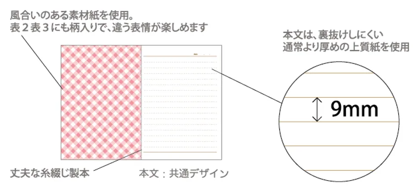 罫線は広めの9mm幅。ゆったりと書くことを好む方におススメです。