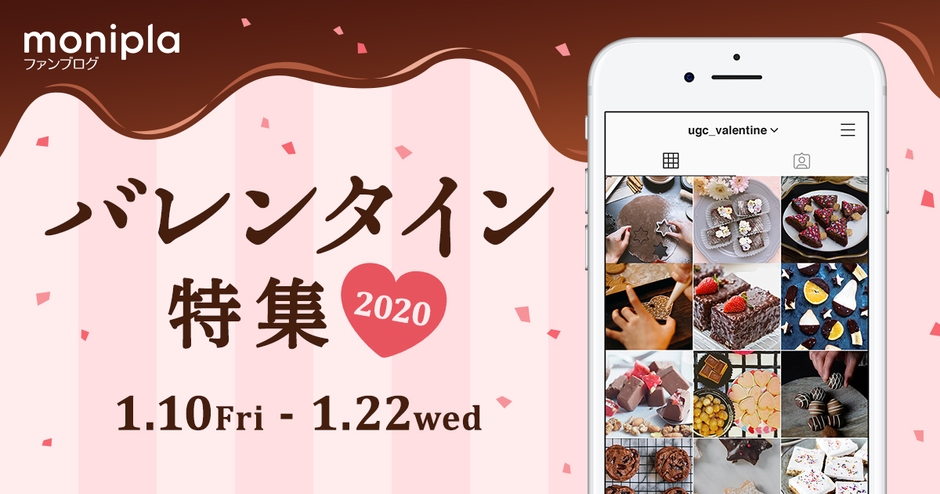 モニログでは、2020年1月10日(金)~1月22日(水)にバレンタイン特集を開催いたします。期間中は、モニログに出展する企業が自社のファンサイト(※3)にて、バレンタインをテーマにしたイベントを実施します。