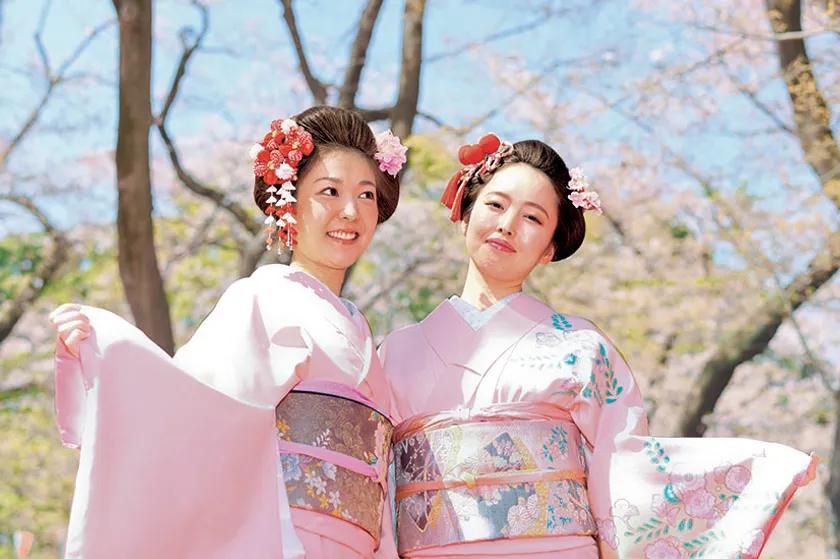 発表会は、多くの花見客が集うひときわ華やかな場所で披露。全員ピンクの着物を着て盛大に行われるパーティーは大注目の的!!毎年たくさんのTV番組や新聞に取り上げられています。
