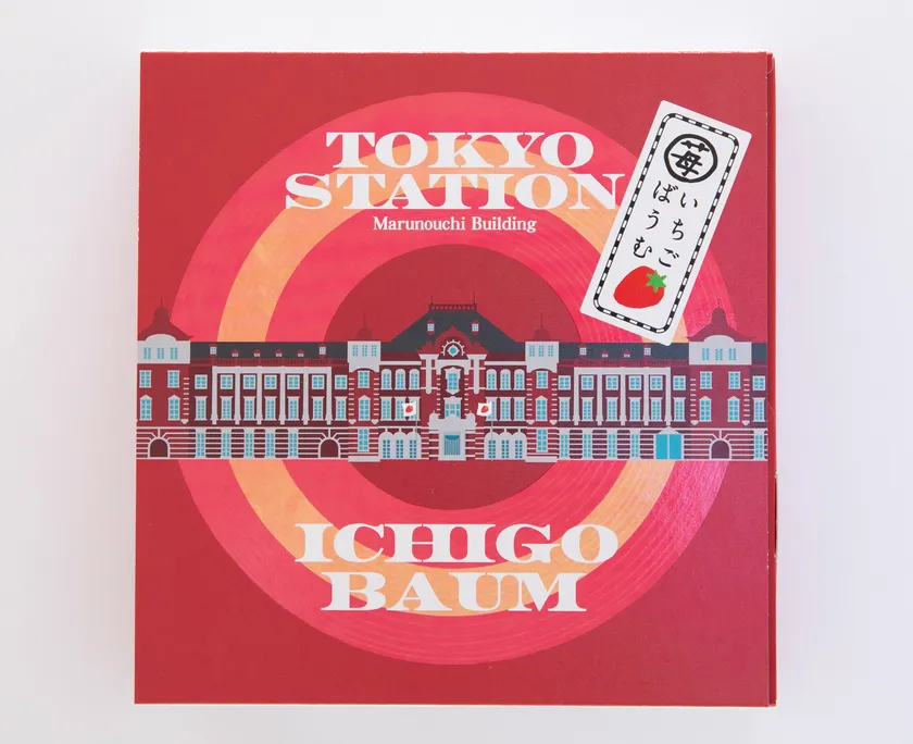 当店人気No.1スイーツ「いちごばうむ」が東京駅をイメージした限定パッケージで登場。苺・練乳・苺の3層で丁寧に焼き上げた、しっとりふわふわのバームクーヘンです。いちごたっぷりのいちご生地と甘みを引き出す練乳生地、そして3層目のいちご生地には、甘酸っぱさが最高のアクセントとなるいちごチョコでコーディング。甘みと酸味のバランスが絶妙な究極のバームクーヘンです。
