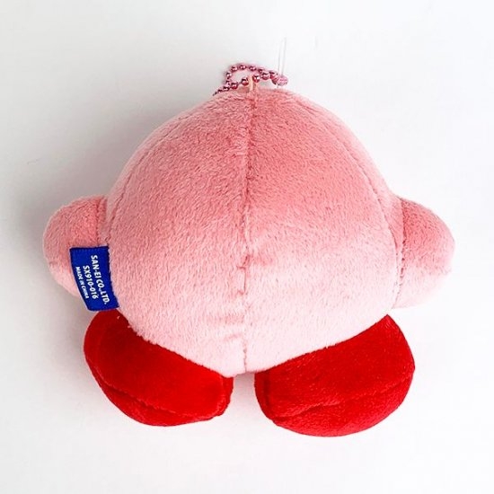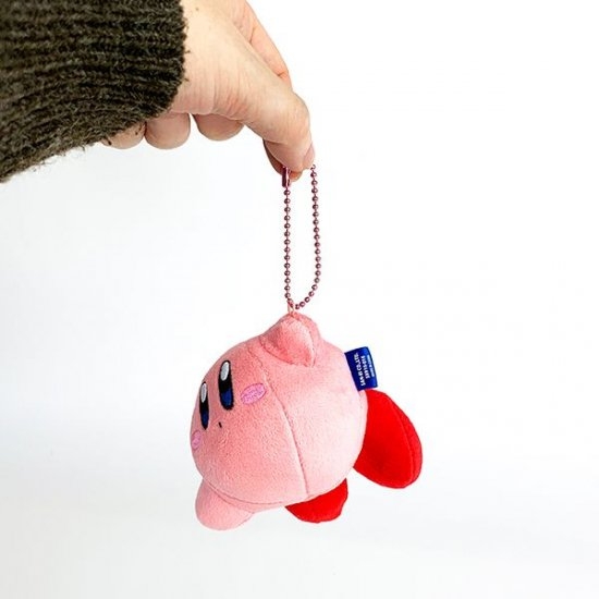 カービィの魅力満載の、スタンダードなぬいぐるみです。上部にはボールチェーンが付いているので、バッグなどに取り付けることもできちゃいます。