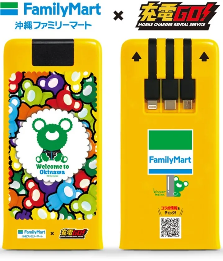 モバイルバッテリーには、沖縄ファミリーマートがDOKUTOKU460とコラボした8種のデザインバリエーションがあり、利用者が楽しめる仕組みとなっています。