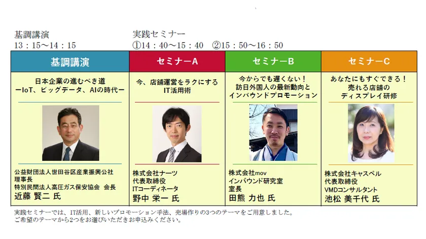 公益財団法人東京都中小企業振興公社(本社:東京都千代田区)は、商店経営に携わる皆様を対象に経営のヒントを得る機会を提供するため、中小小売商業活性化フォーラムを開催しています。本年度は、下記のとおり第一部では基調講演、第二部ではIT活用、新しいプロモーション手法、売場作りをテーマとした実践セミナーを行います。どうぞ多くの皆様のご参加をお待ちしています。