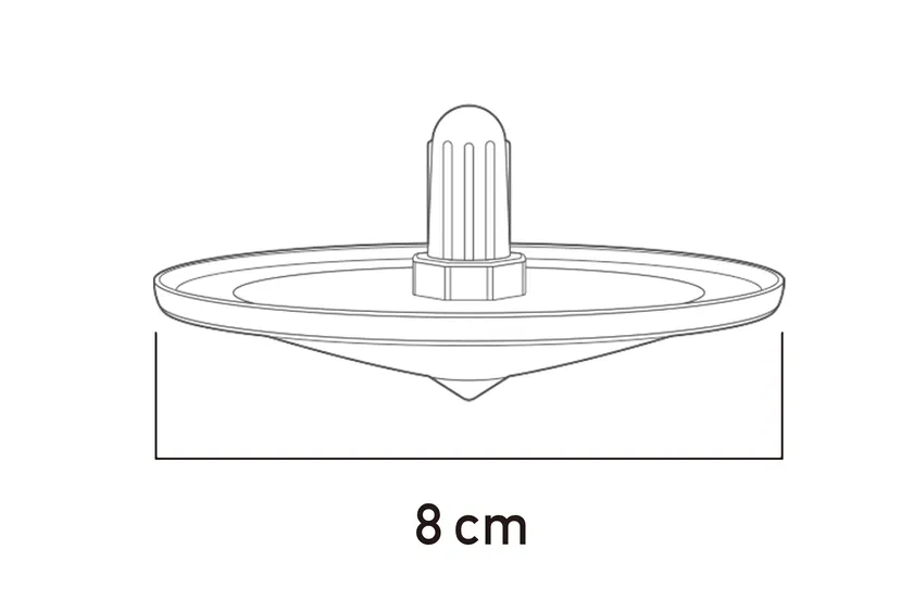 コマのツマミは太く、滑り止めがあるので子供でも回しやすい形状です。コマ自体のサイズも大きめの直径8cm。ABS樹脂製で軽く、重心が低いので長く回ります(最長約2分)。コマが長く回るため、カードの色や形の変化をじっくり観察できます。