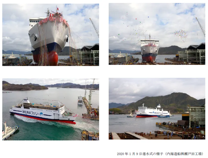 本船は「ブルーマーメイド」※1、「ブルードルフィン」※2並びに「ブルーハピネス」※3と同型船であり、「災害時多目的船」※4として大規模震災時には救助活動に寄与できる設備を搭載し、燃料消費量の削減及びCO2排出量の削減が可能な最新鋭で環境に優しいフェリーとなります。正式な就航日等詳細につきましては、決定次第改めてプレスリリース致します。