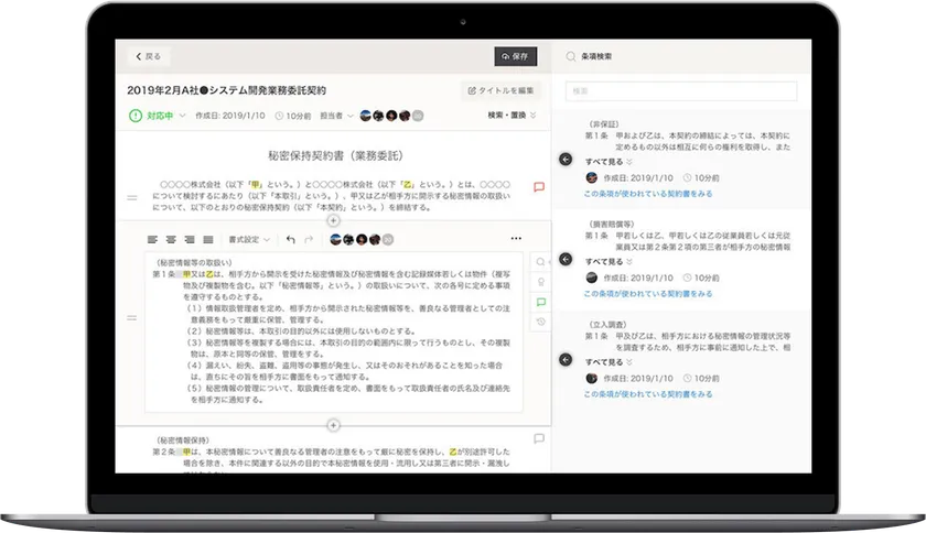 この契約書がいつ・どんな経緯で作られたものなのかシステム上の履歴を遡ることで、全てのメンバーで「共有」することができます。
