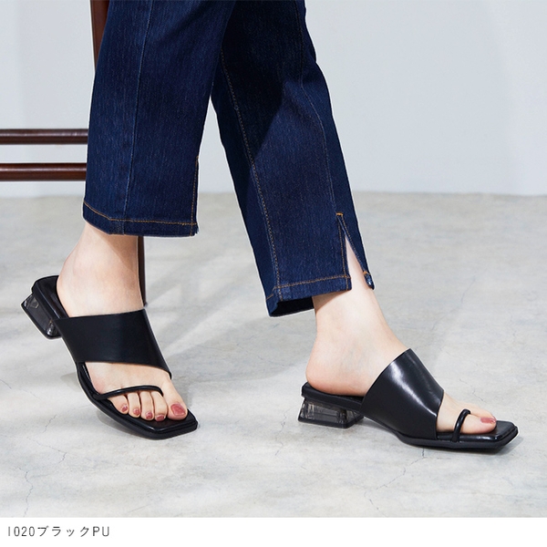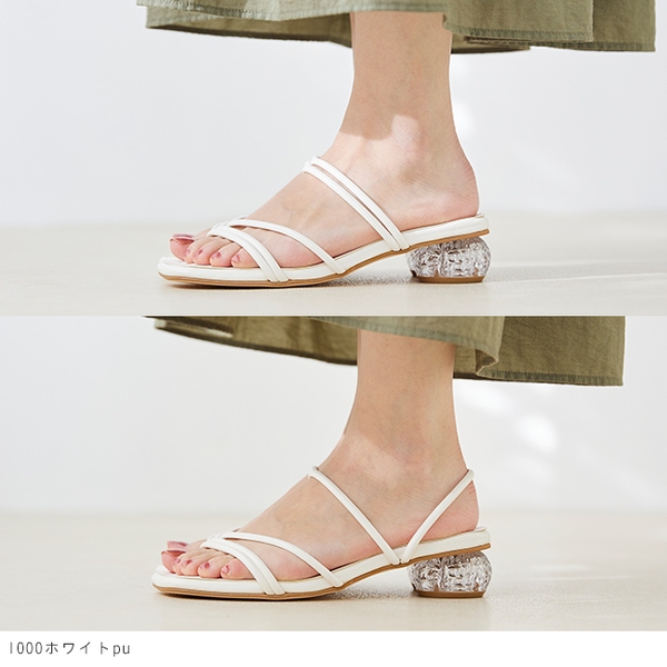 商品名 :menue(メヌエ) スクエアトゥ5連ストラップクリアヒールサンダル