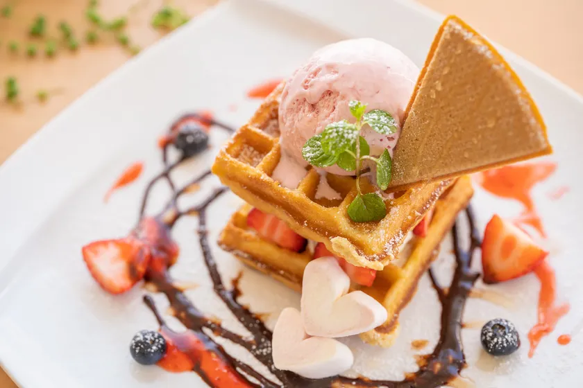 ミエレでは、チョコレートとイチゴを存分に楽しめる「ストロベリーチョコワッフル」を、2月1日(土)から期間限定で販売します!通常メニューでも大人気の自家製ワッフルに、甘いチョコレートと旬を迎えたイチゴをふんだんに乗せ、ショートケーキ風に作り上げた贅沢な一品です。ぜひ大切な家族や友人、カップルでお召し上がりください!