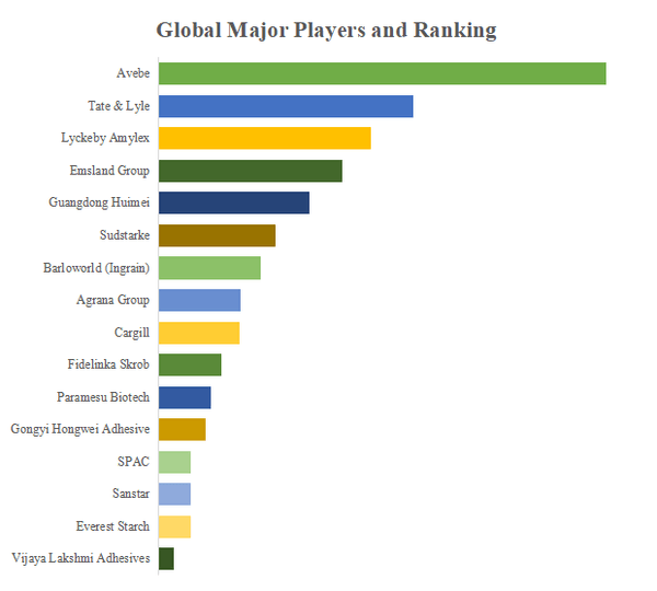 YHResearchのトップ企業研究センターによると、黄色と白のデキストリンの世界的な主要製造業者には、Avebe、Tate & Lyle、Lyckeby Amylex、Emsland Group、Guangdong Huimei、Sudstarke、Agrana Group、Barloworld (Ingrain)、Cargill、Fidelinka Skrobなどが含まれている。2023年、世界のトップ10企業は売上の観点から約68.0%の市場シェアを持っていた。