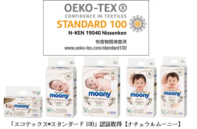 ユニ・チャーム株式会社(本社:東京都港区、代表取締役 社長執行役員:高原豪久)は、最高品質のプレミアム紙おむつである『ナチュラルムーニー』において、世界最高水準の安全性が確認された繊維製品の証である「エコテックス(R)スタンダード100(STANDARD100 by OEKO-TEX(R))」認証を取得しました。