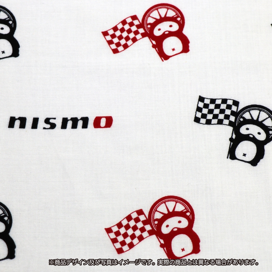 チェッカーフラッグを持ったたぬきとパターン柄のNISMOエンブレムがポイントです。