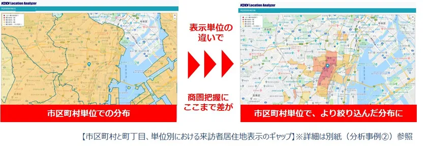 KDDI Location Analyzer「来訪者居住地分析機能」が バージョンアップ 店舗・施設に来た人の居住地を町丁目単位で分析可能に