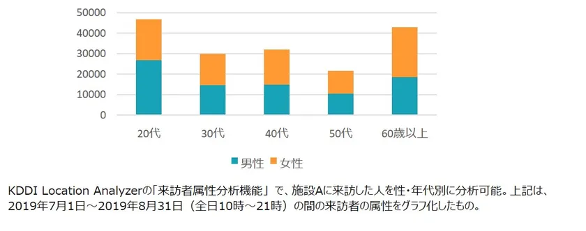 ※位置情報ビッグデータとは、KDDIがauスマートフォンユーザー同意のもとで取得し、誰の情報であるかわからない形式に加工した位置情報データおよび属性情報 (性別・年齢層等)を指します。