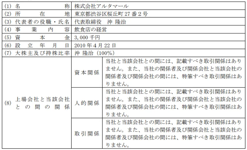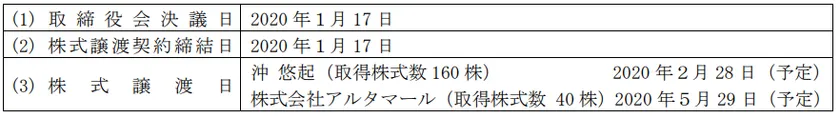 株式会社アルタマール(取得株式数40株)