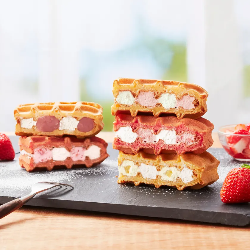 ほんのりピンクや真っ赤な色合いがとってもキュートないちごのワッフルは、春の香りを届けるホワイトデーの贈り物としてもおすすめです。