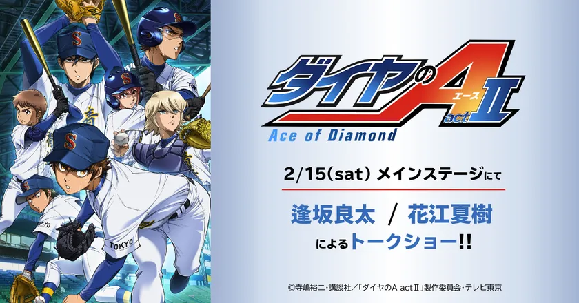2006年の連載開始時より、老若男女問わず幅広い層に支持されている大人気野球マンガを原作としたTVアニメ「ダイヤのA act II」のステージが決定。主人公の沢村栄純役の逢坂良太さん、“春っち”こと小湊春市役の花江夏樹さんの2人の声優が、トークを通じて本作の魅力をお伝えします。