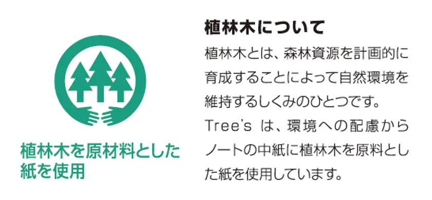 『Tree's』は、日々の生活の中で、ノートをより便利により楽しくお使いいただくことを目指し、豊富なカラーバリエーションを取り揃えました。用途やファッションに合わせて、いろいろな組み合わせをお楽しみください。