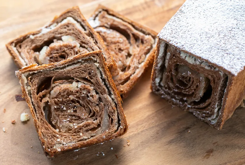 ほろ苦いココア生地に白餡を巻き込み焼き上げたデニッシュ。