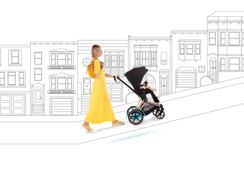 オープンにあわせて、フラッグシップストア限定で、登り下りの坂道や舗装されていない不整地の走行を快適にサポートする電動アシスト付きストローラー『e-PRIAM(イープリアム)』の販売を開始いたします。サイベックス最上位モデルPRIAM(プリアム)にスマートテクノロジーが融合した、サイベックスが提案する、お子さまとのお出かけを驚くほど楽にする革新的なストローラーです。(※)