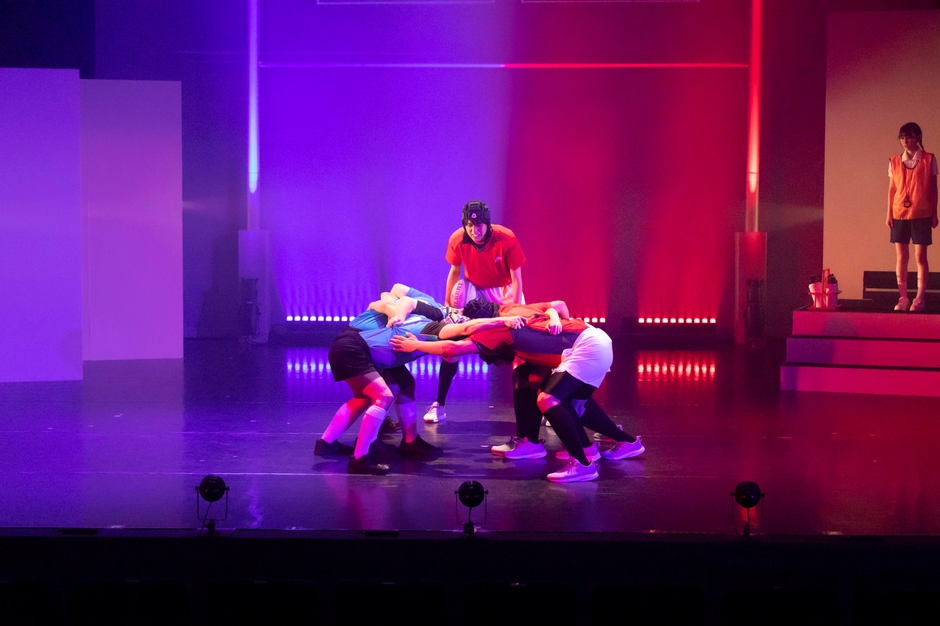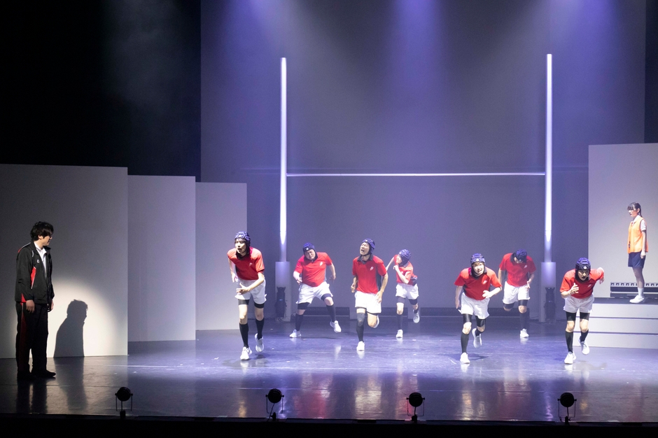 囲み取材の後、ゲネプロを公開。新任教師でラグビー部監督の酒田の苦悩と奮闘、素人集団のラグビー部の部員たちの挫折と成長、理事長と秘書の思惑などが描かれたストーリーが展開。そして、ステージ上を所狭しと駆け回り、パスをし、タックルし、トライするスピーディーで迫力のある試合のシーンも大きな見どころとなっていた。