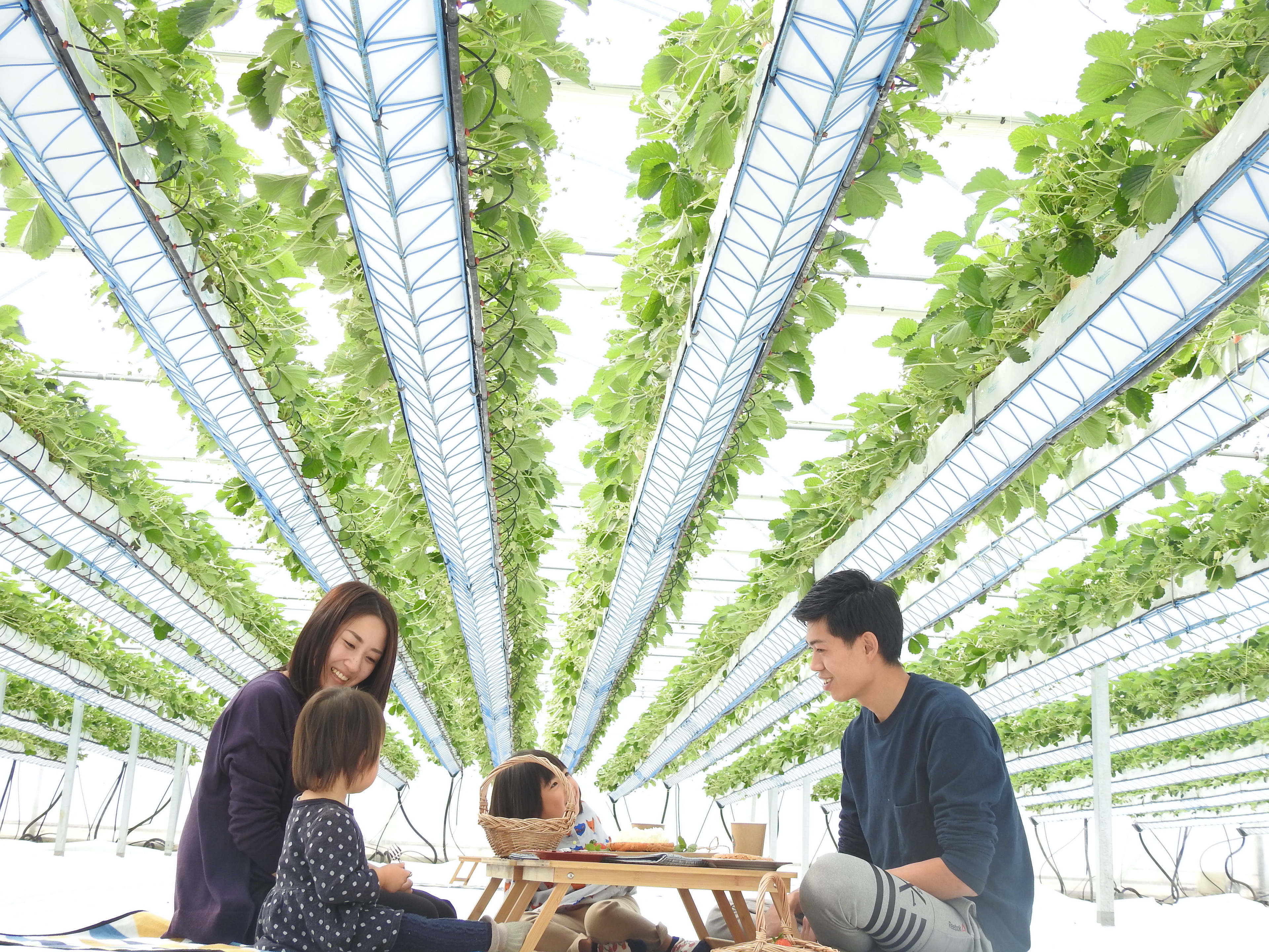 いちごを見上げながら楽しむカフェタイムを提案。レジャーシートやテーブルはもちろん、ハンモックなどの貸出も無料。従来どおり、摘み取ったいちごも有料にて楽しめます。写真にとりたくなるいちごの「贅沢な時間」を満喫してください。