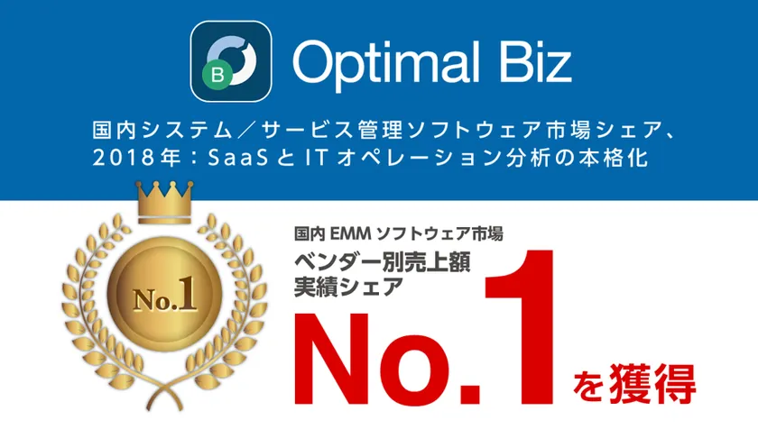 MDM・PC管理サービス「Optimal Biz」、 2018年国内エンタープライズモビリティ管理ソフトウェア市場 ベンダー別 売上額実績シェアNo.1を獲得