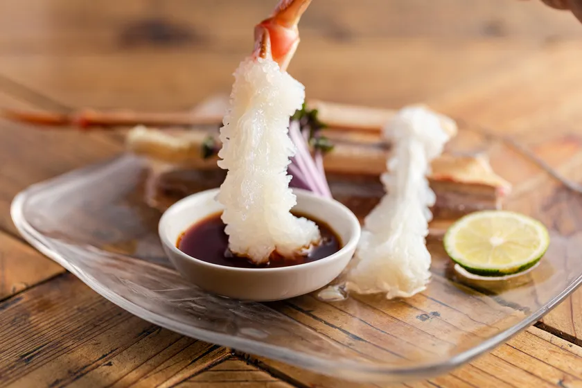 初の東京出店となる「Casava 学芸大学店」の目玉はなんといっても香住から活きたまま運ばれた「活直松葉ガニ・黄金ガニの一匹丸ごと量り売り」。丸ごと買った松葉ガニ・黄金ガニを、部位ごとにおすすめの食べ方、もしくは好きな食べ方で楽しむことができます。