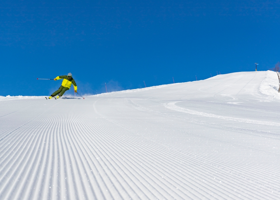 誰も滑っていない、まっさらなバーンを思いのまま滑走する。