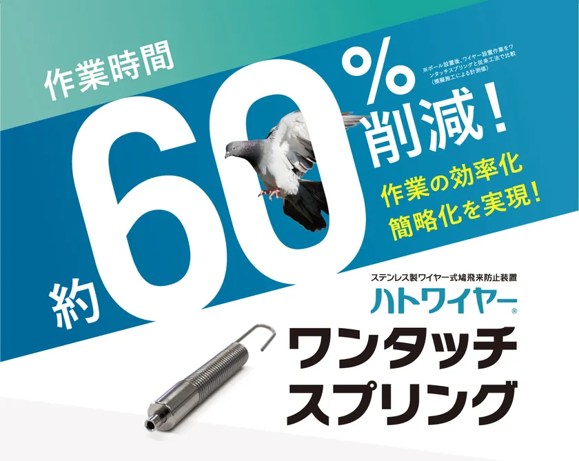 株式会社コーユー(本社:兵庫県西宮市、代表取締役社長:山本 剛司)は、防鳥ワイヤーシステム「ハトワイヤー」の新金具「ワンタッチスプリング」を、2020年1月27日に新発売いたします。