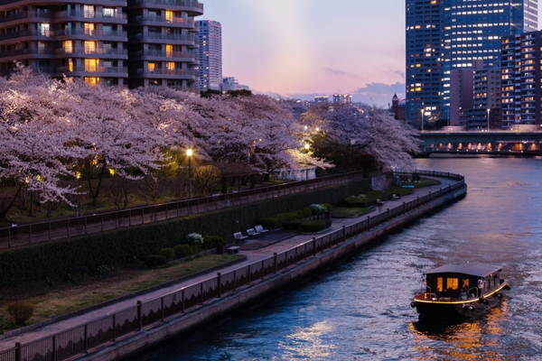 隅田川から東京の美しい夜景を眺め、桜を愛でる舟あそび