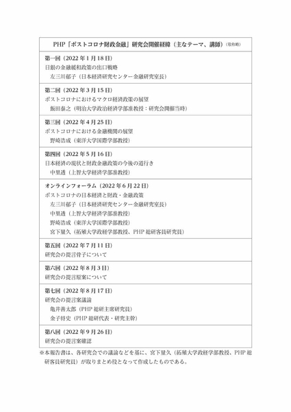 3 PHP「ポストコロナ財政金融」研究会開催経緯