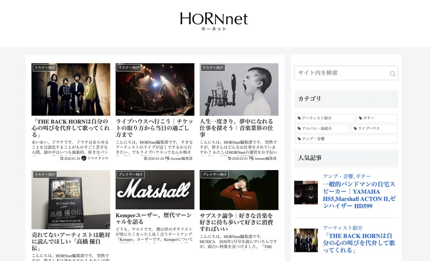 音楽メディア「HORNnet」ウェブサイトイメージ